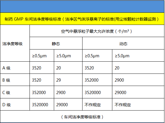 1、 GMP車間潔凈區(qū)潔凈度等級標準